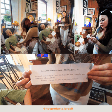 Al entrar, la fascinante bruja Leca, creación del Grupo Resgatarte, nos recibe con una sonrisa enigmática, ofreciendo un consejo profundo: